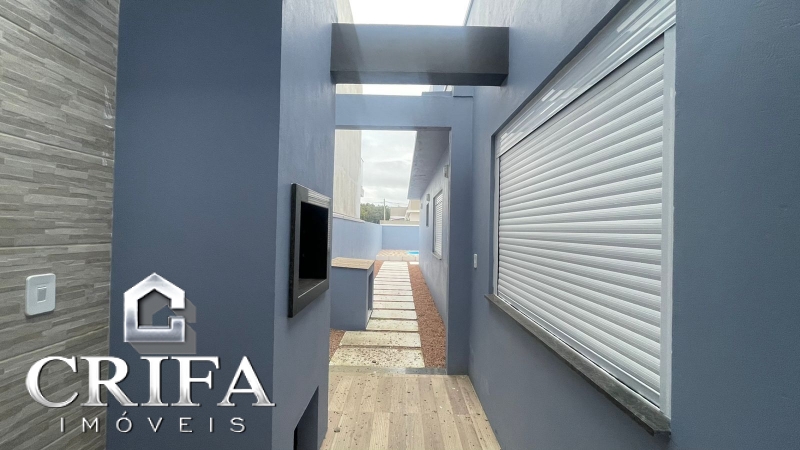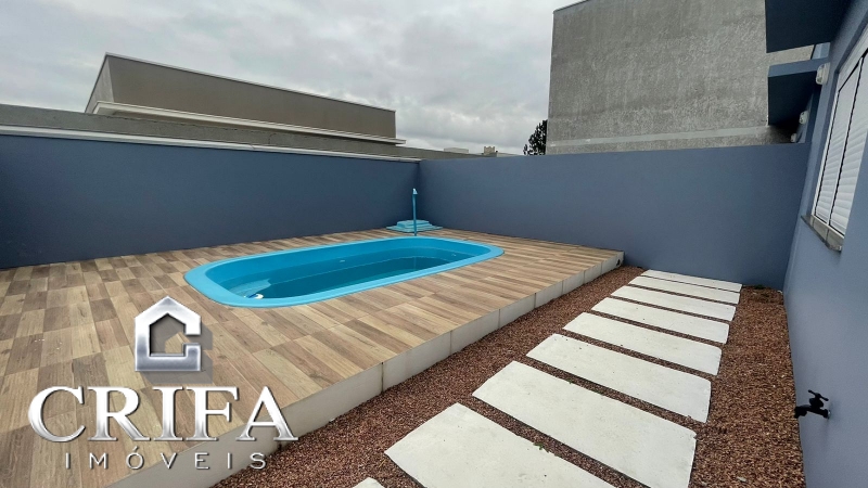 Composto por 03 dormitórios sendo 01 suíte, living dois ambientes integrado a cozinha, banheiro social, área de serviço, churrasqueira, abrigo com espaço para 01 automóvel, piscina aquecida, junker e área externa frente e fundos.