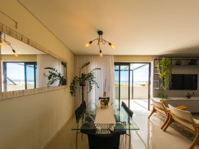 Apartamento mobiliado e decorado com vista mar e terraço.