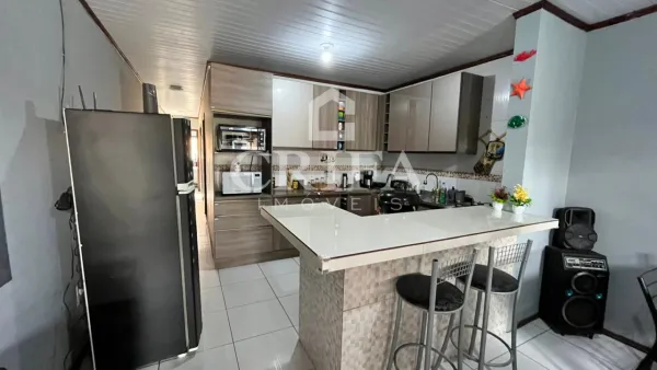 Casa geminada localizada em região de moradores. Composta por 02 dormitórios, sala de estar e cozinha em ambiente integrado, banheiro social, área de serviço, churrasqueira e abrigo com espaço para 01 automóvel.