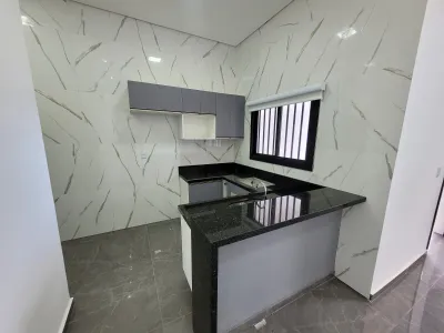 Excelente casa nova semi - mobiliada toda em laje de concreto, nunca antes habitada. Composta por 02 dormitórios sendo 01 suíte, sala de estar, cozinha, banheiro social, área de serviço, garagem para 01 veículo e pátio frente e fundos.