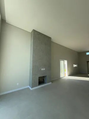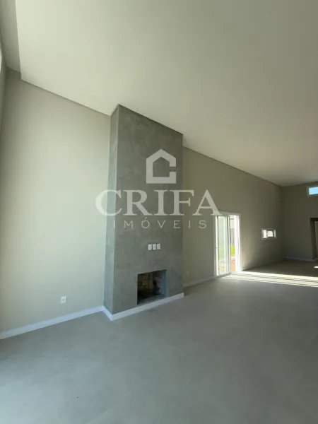 Casa térrea alto padrão AAA com pé direito alto,03 dormitórios, sendo 02 suítes e 01 suíte master com closet, cozinha e sala de estar integrados, em conceito aberto,espaço gourmet, banheiro social, garagem para 2 carros, lavanderia, lareira; água quente em todas as torneiras; paisagismo, 200m2, esquadrias em PVC e persianas automatizadas, esperas para placa solar e para automatização residencial, esperas para climatização, piso em porcelanato classe A, forro em gesso. esperas para gás central.