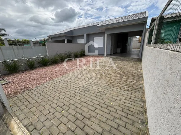 Composto por 02 dormitórios sendo 01 suíte, sala de estar, cozinha, banheiro social, área de serviço, garagem com churrasqueira e vaga para 01 veículo e pátio frente e fundos.