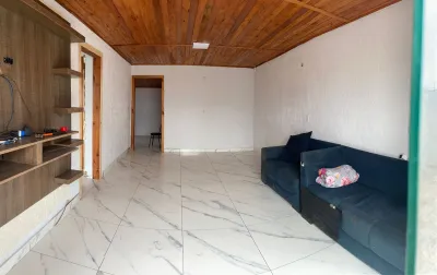 Composta por 02 dormitórios, sala de estar ampla, cozinha, banheiro social, pátio frente e fundos com vaga e ainda conta com quiosque com churrasqueira e pia auxiliar.
