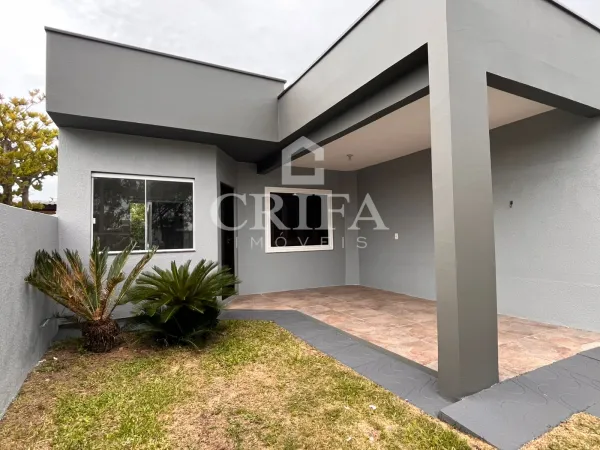 Composto por 02 dormitórios sendo 01 suíte, conceito aberto integrando sala de estar e cozinha, banheiro social, área de serviço, espaço com churrasqueira, abrigo para 01 veículo, além de pátio frente e fundos.