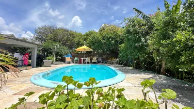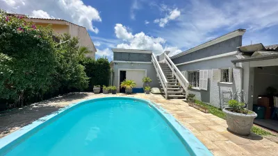 A área externa é um verdadeiro convite ao lazer: espaço gourmet com churrasqueira, ideal para receber e celebrar, piscina ensolarada, cercada por muito verde e com um clima de total relaxamento, quarto adicional com banheiro independente, que pode ser usado como espaço multiuso ou para hóspedes, terraço amplo para desfrutar o melhor do clima litorâneo, garagem coberta para 3 veículos e mais 2 vagas descobertas, localizada em uma rua alta, tranquila e bem pavimentada, garantindo fácil acesso e segurança.