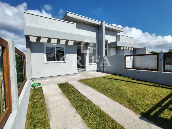 Composto por 02 dormitórios sendo 01 suíte, conceito aberto integrando sala de estar e cozinha, banheiro social, lavanderia, churrasqueira e pátio frente e fundos.